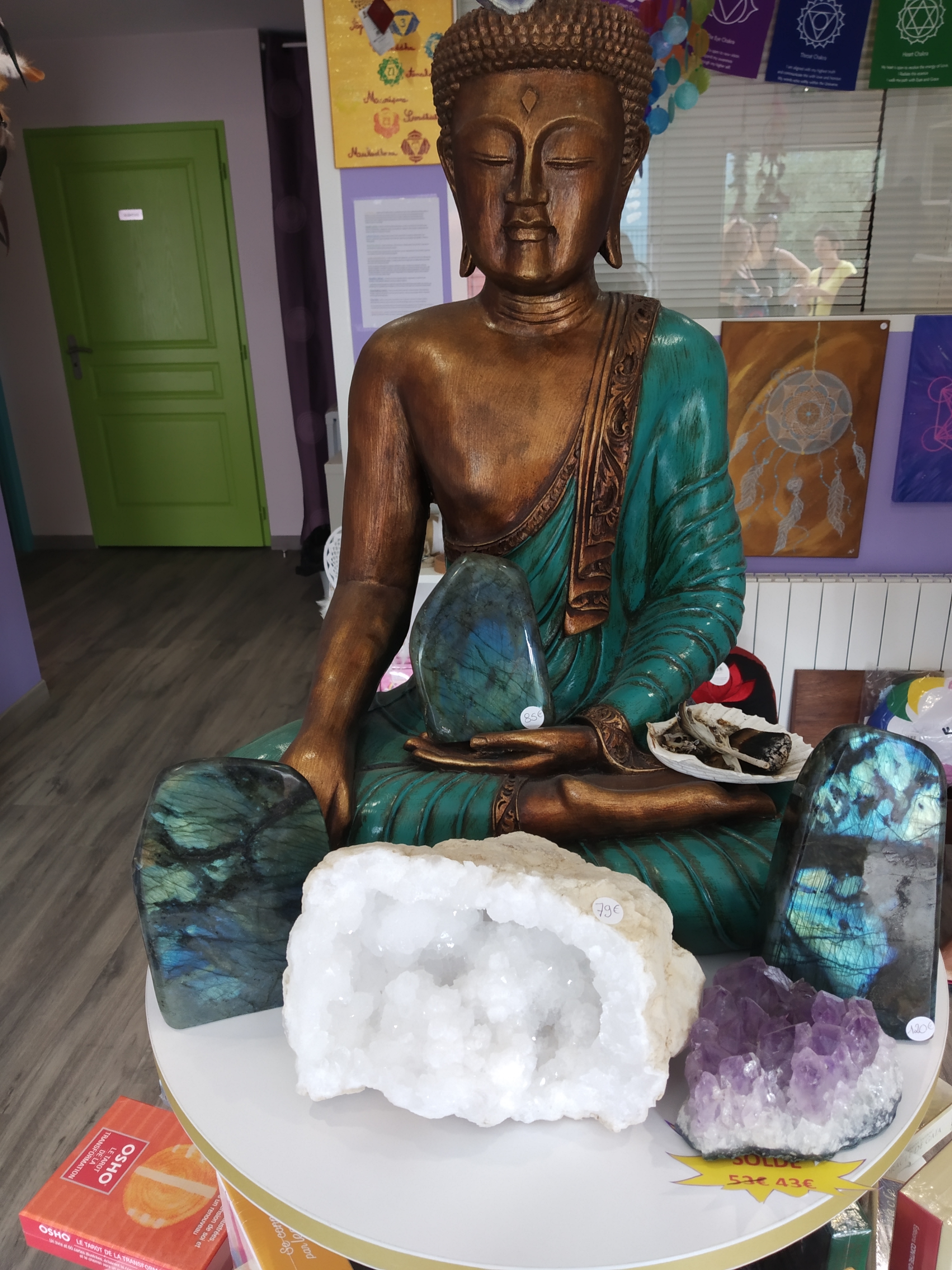 Un accueil chaleureux Un endroit plein de magie Ça faut un bien fou d'aller dans cette boutique Mon cristal à déjà trouvé sa place d'ailleurs Bon succès à vous les filles Des bisous